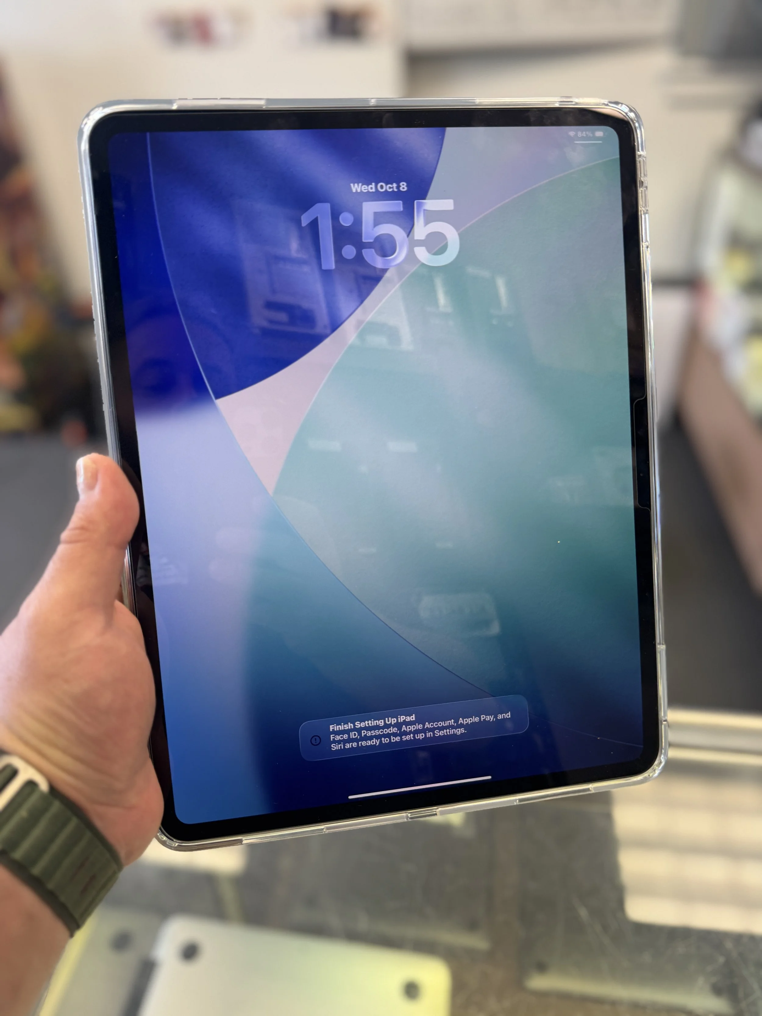 This unit features a clear case and a screen protector installed